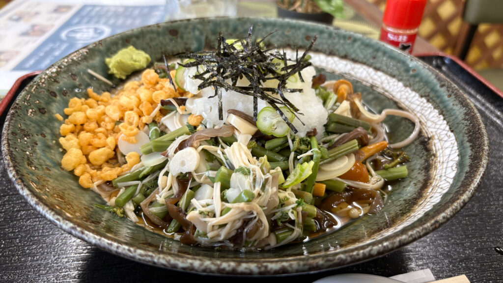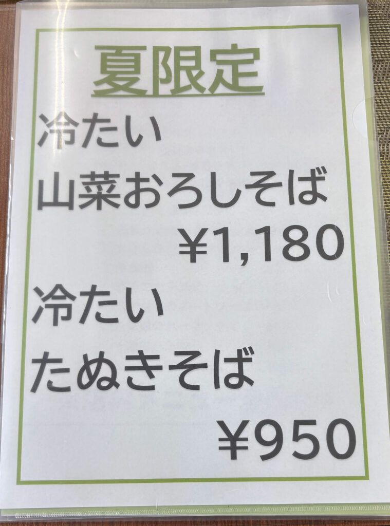 期間限定の冷たい山菜おろしそばを注文。 提供時間は普通かな…その間にメニューを再確認。