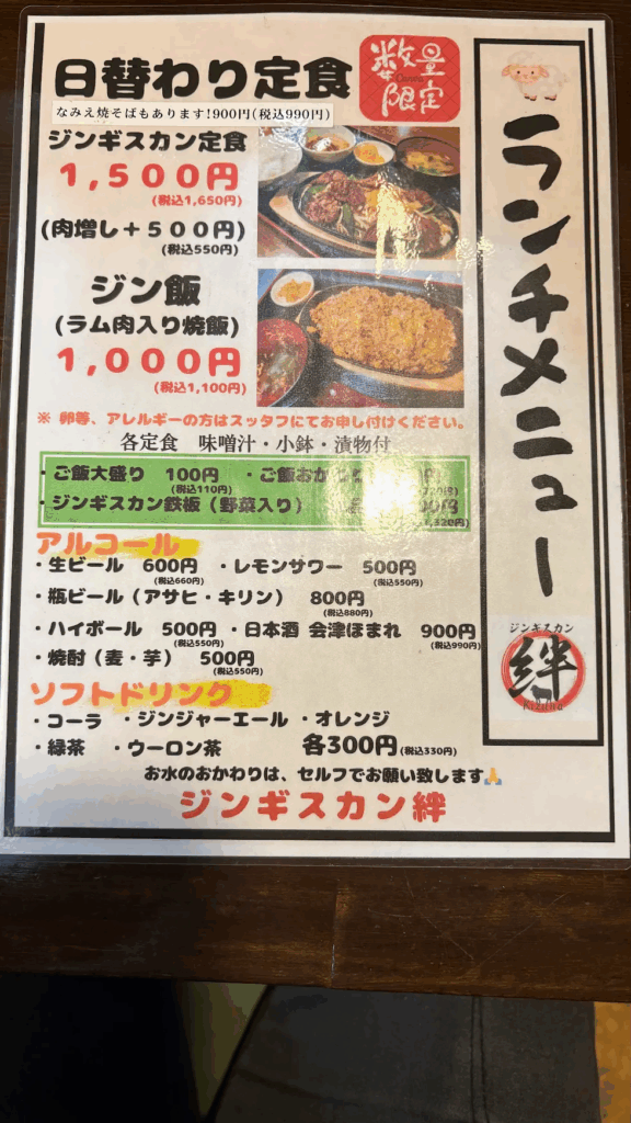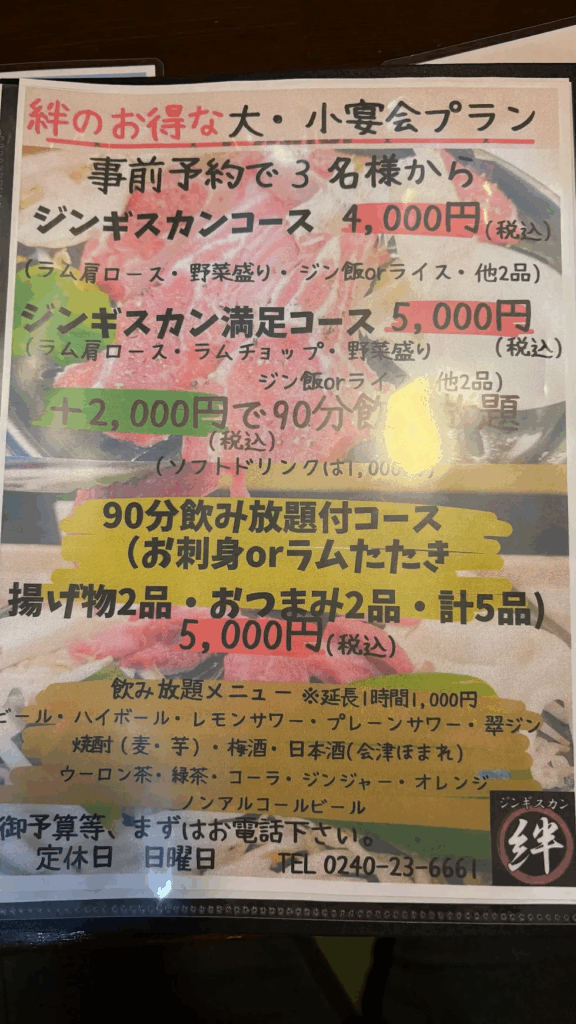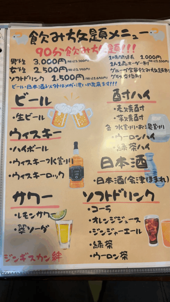 ■丼物 ■ジンギスカン ■たまにダーツ大会 ■飲み放題 ■アルコール提供あり