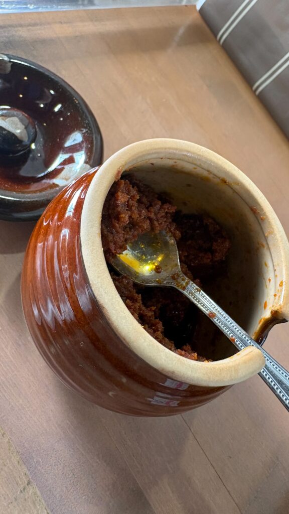麺は太麺、スープはそれなり…と思ったらテーブルに小瓶が。もしや?と思い見てみると辛味噌っぽいのでそれを投入して確認…だいぶ美味い!ので追加しつつ完食しました。